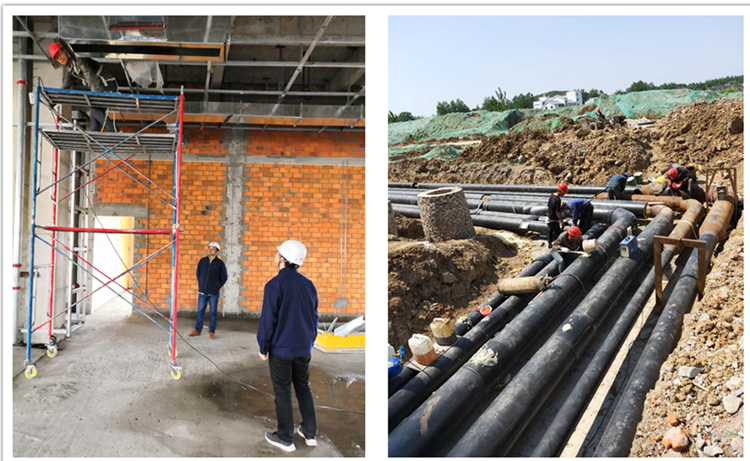 安裝公司肥東政務中心項目、靈璧新縣人民醫院項目開展現場安全隱患檢查、室外管道接頭發泡保溫工作。