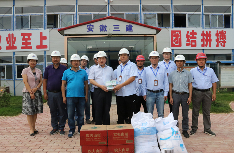 炎炎夏日送真情,絲絲清涼潤心田。7月15日至7月31日,公司黨委書記、董事長左登宏,黨委副書記、總經理何洪春,黨委副書記黃麗春等班子成員分別帶隊,冒著高溫酷暑,深入項目工地、工廠車間,給奮戰在施工一線的職工送去了綠豆、白糖、毛巾、十滴水、仁丹、風油精等防暑降溫物品。兩周的時間里,公司領導班子“送清涼”覆蓋全公司范圍內16個專業公司和15個在建項目部,共計慰問人數達6000余人。