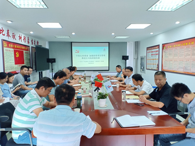 8月20日下午,公司副總經理李建成為市政公司和設備租賃公司廣大黨員干部職工講授《守初心擔使命,加強投資項目管理,推進公司高質量發展》的專題黨課。在市政公司會議室,來自市政公司和設備租賃公司的黨員、入黨積極分子及機關管理人員共20余人參加了黨課教育。