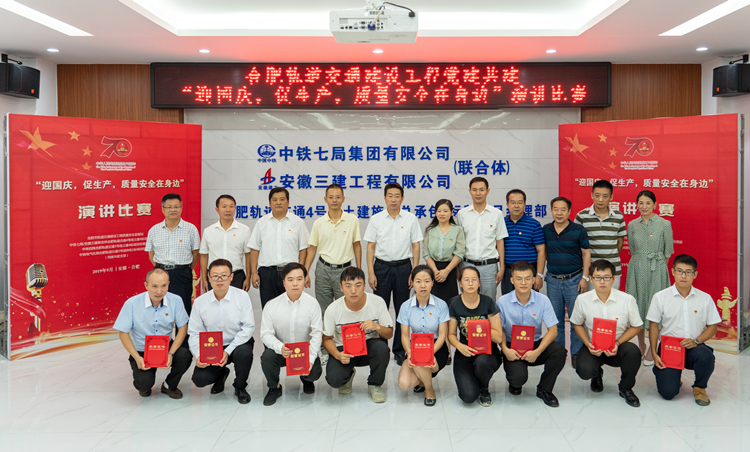 經過激烈角逐,來自中鐵七局、安徽三建合肥軌道交通4號線土建4標項目部聯合黨支部的鄭忠祥以《精筑軌道工程豐碑唱響軌道建設之歌》作品獲得了征文和演講比賽的雙料冠軍。會上還對征文和演講選手進行了表彰。公司軌道交通項目的聞耀、單少紅分別結合自身崗位、項目建設、技術創新以及個人成長方面進行了演講,充分展現了“務實創新爭一流,團結拼搏愛三建”的企業精神。