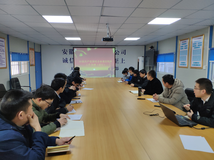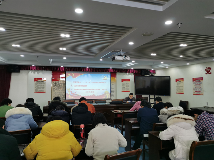 1月16日,裝飾公司黨支部全體黨員學習《中國共產黨國有企業基層組織工作條例(試行)》