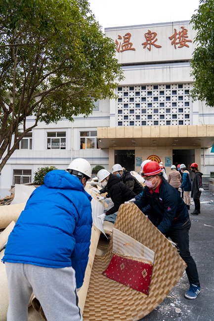 2月3日三建黨員職工主動(dòng)到現(xiàn)場(chǎng)開展拆除和清運(yùn)工作