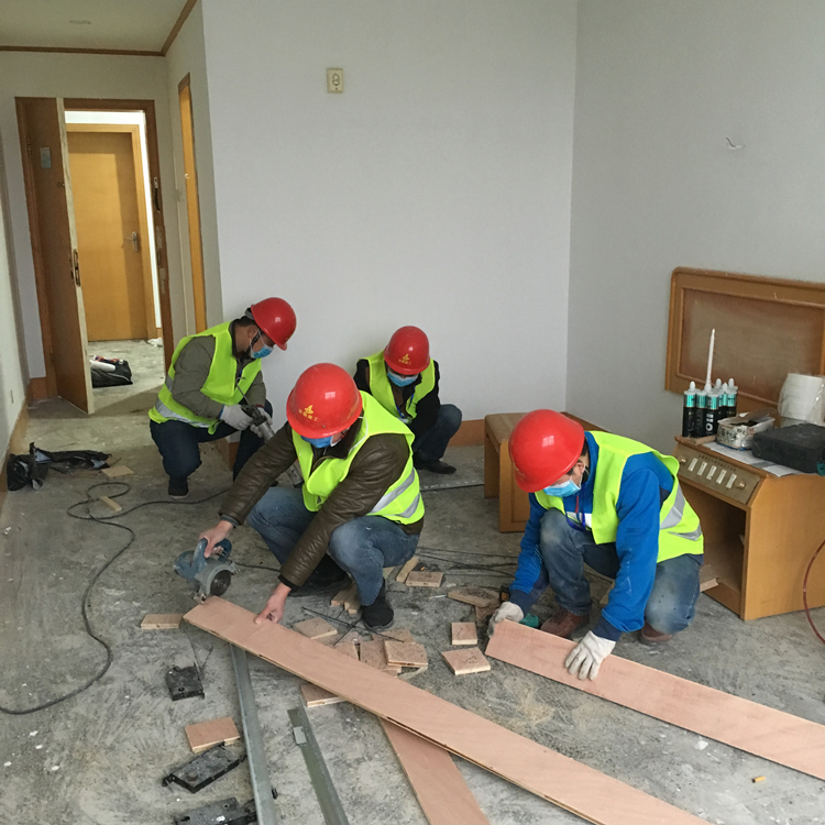 半湯備用醫院項目工人戴口罩施工