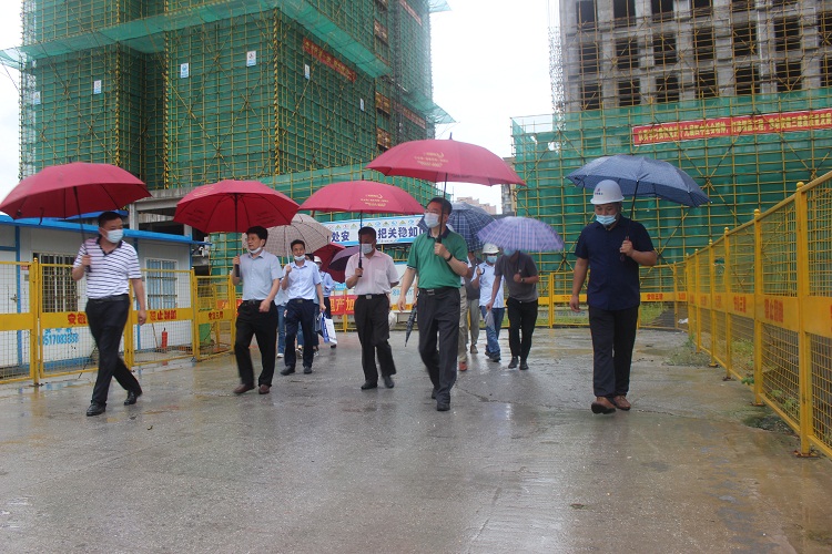 劉家靜一行到南昌后,冒雨直奔項目一線,實地察看了項目安全文明施工、質量管理等項目建設情況。
