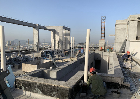 湛江力高項目冒雨綁扎鋼筋,搶工正當時