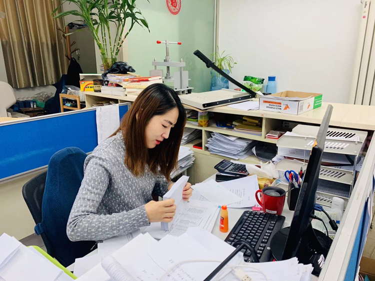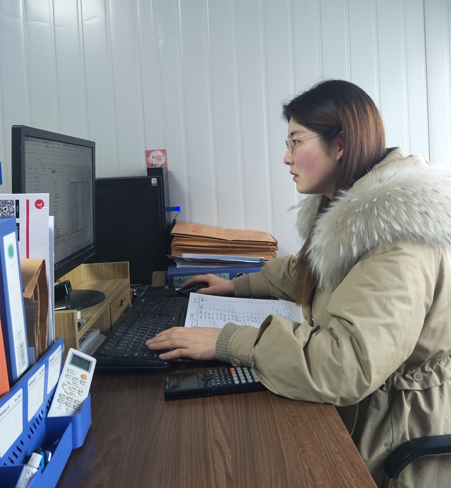 十公司財務科員張俠鳳(懷孕7個多月)堅守崗位處理審計往來函證回函統計工作