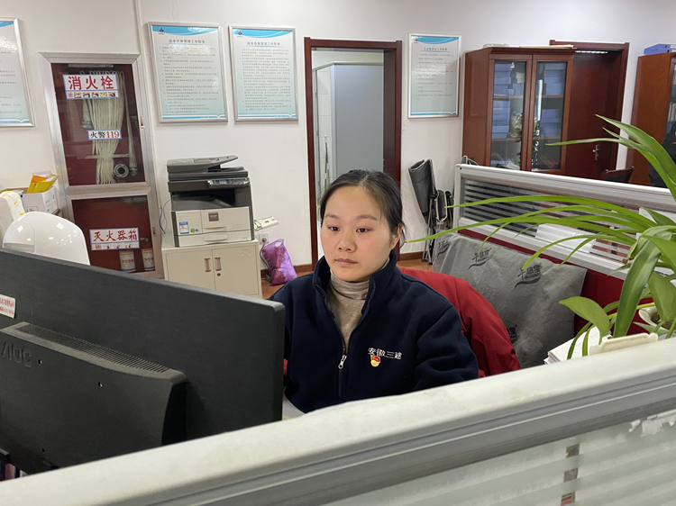 蚌埠公司淮南鼎元世家項目部核算員黃夢玲正在分解工程量、報招標計劃、整理竣工項目成本資料