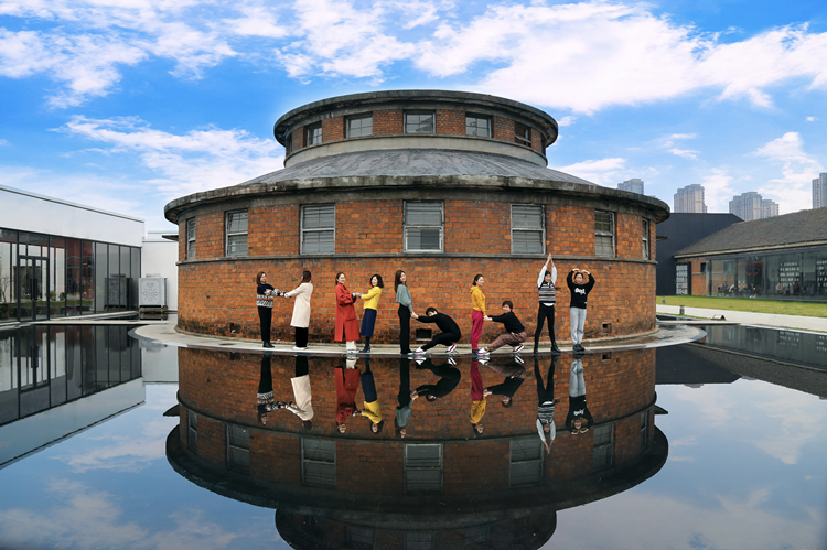 裝飾公司組織全體女職工組成“HAPPY!”字樣,展現女職工健康快樂精神風貌