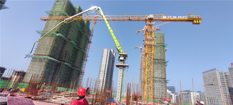 HGC33D-3R布料機機器高度23米,旋轉半徑可達33米,工作時只需1人即可完成所有操作,且機器服務年限長。此前該設備常用于核電站建設,目前國內僅有20余臺在民用建筑施工中使用。采用該設備可以大幅節約人力成本、提高混凝土施工質量、縮短施工工期。目前每層標準層面積將近2000平方的金寨超高層項目,僅需一臺布料機就可以全面覆蓋整個施工面,而使用傳統布料機則需要四臺;較傳統布料機,使用新型布料機每層澆筑混凝土所需時間可節約時間10個小時,在砼澆筑上可為整體結構工期縮短近一個月時間;此外,該布料機還能快速有效的實現高低標號混凝土澆筑的穿插,減少混凝土的冷縫,能有效確保混凝土質量。